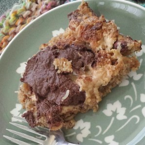 10. Turn off the stove, cover the pot and put in the oven for an hour. Check every 30 minutes or so and add stock as necessary to keep meat from drying out. Add water to that bowl on the other rack if it’s all evaporated.