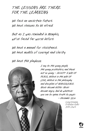 By his own count, John Lewis was arrested more than 40 times during his days of civil rights activism.  I don’t like to think about how many of those times he was also battered or beaten.  Yet today he stands before crowds and preaches a message of diligence and courage.